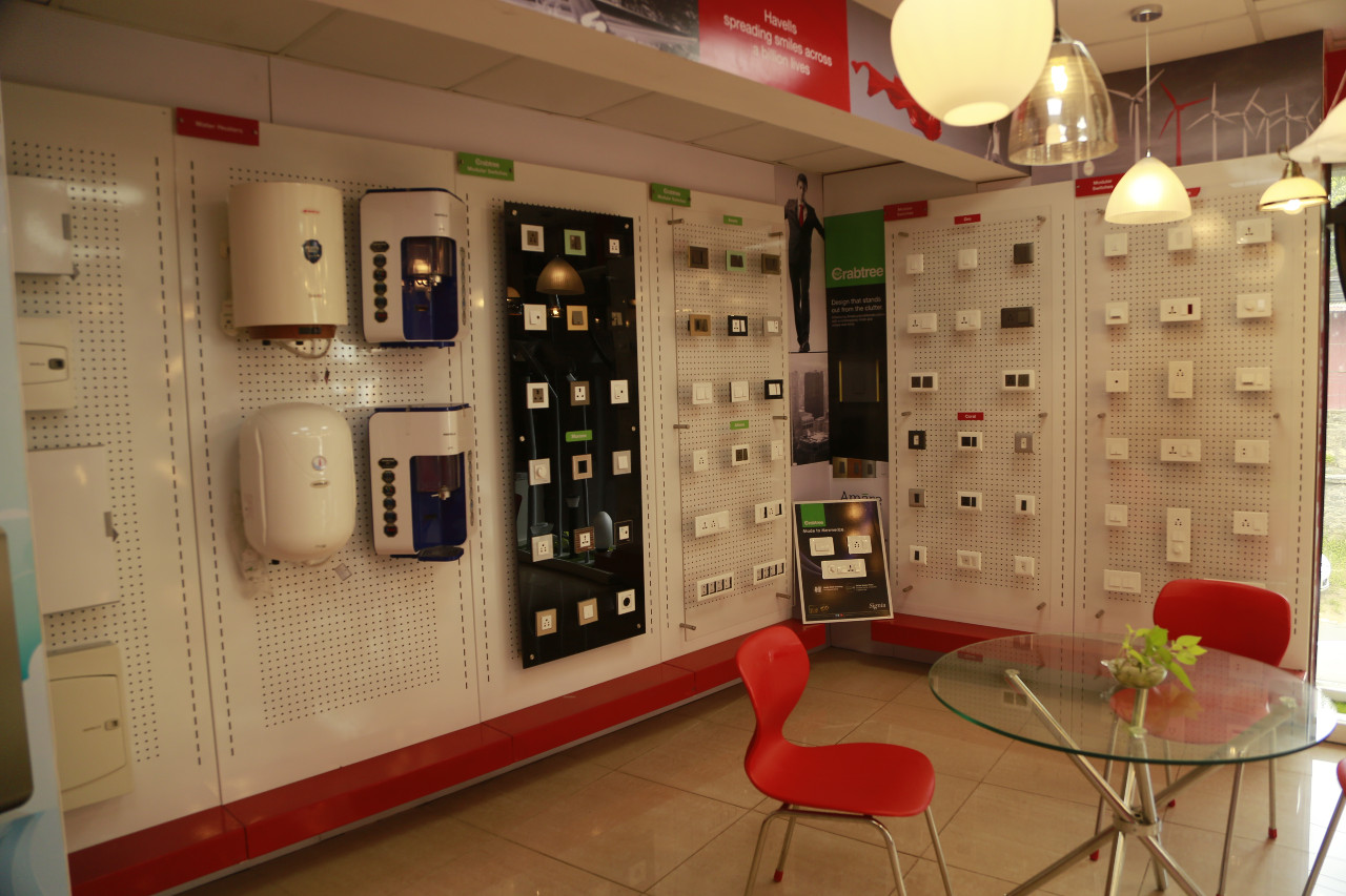HAVELLS GALAXY is the exclusive retail showroom of Havells,which owns prestigious global brands like Crabtree, Sylvania, Concord, Luminance and Standard. Aimed at providing a complete solution to all electrical needs from the time electricity enters a home to the light output,it offers a wide range of stylish, high quality and energy efficient electrical equipment including Industrial Switchgears, Cables, Fans, CFLs, Lighting Fixtures, Electrical water heaters, Crabtree switches and Domestic Appliances, etc.